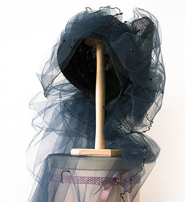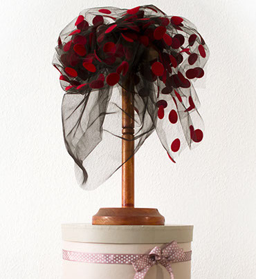 Ma recherche se veut précieuse, tant par le choix des matières qui vont de la soie, aux velours ou aux dentelles, en passant par les tulles et les voilettes, de préférence anciennes, que par le sens du détail, l‘exigence des finitions, et le souci d‘un savoir-faire ancien.